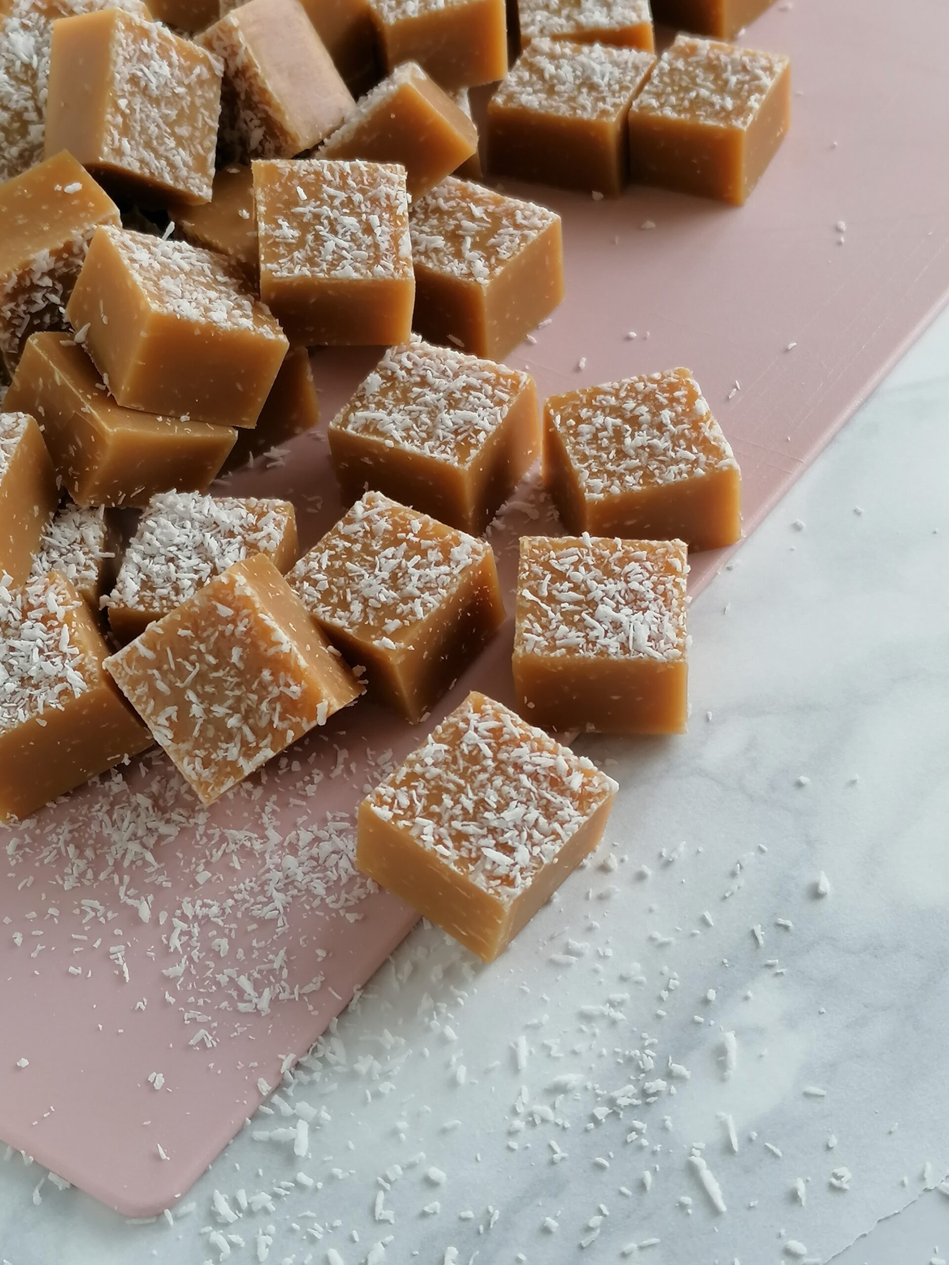 Nieoczywiste, zaskakujące i pełne smaku – krówki kokosowe premium to propozycja dla miłośników egzotycznych słodyczy. Ich wyjątkowa receptura łączy maślany karmel z dużą ilością wiórków kokosowych, tworząc intensywnie kokosowy smak i przyjemnie kruchą konsystencję.